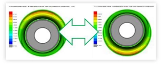 На наступному малюнку показано кінцево-елементну модель конкретної підвісної втулки під дією радіального навантаження та контур результатів розрахунку.