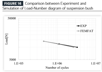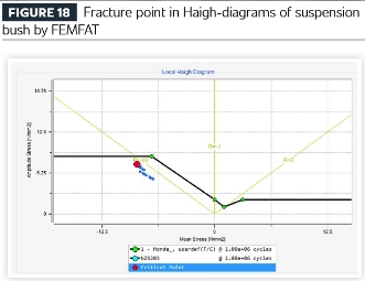 Далі результати вищевказаного структурного аналізу передаються в модуль аналізу втоми програмного забезпечення (у цьому випадку за допомогою програмного забезпечення FEMFAT від Magna ECS) і порівнюються з результатами випробувань на міцність. Випробування та аналіз демонструють відмінну стабільність як довговічності, так і розташування тріщин.